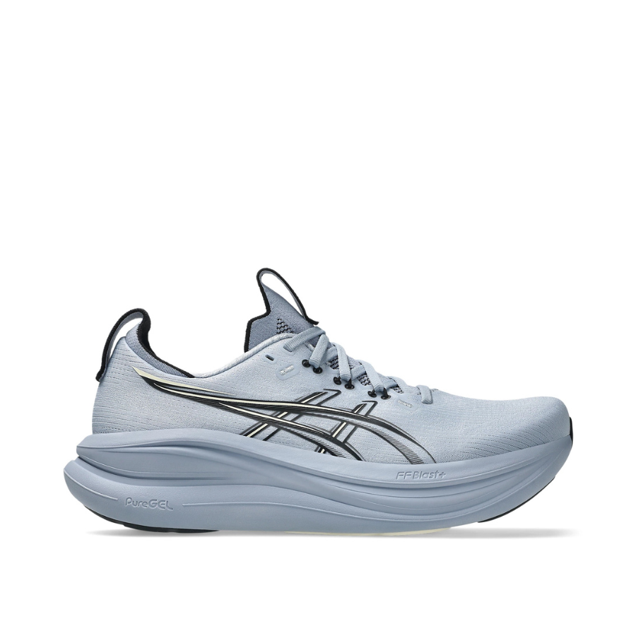 The Asics Gel Nimbus 28 Grey Blue / Black Mens is a cushioned, stable neutral trainer. It works well for easy runs and recovery days. Suitable for runners of all levels. The updated midsole supports natural movement while still delivering the soft, plush feel the Nimbus line is known for.