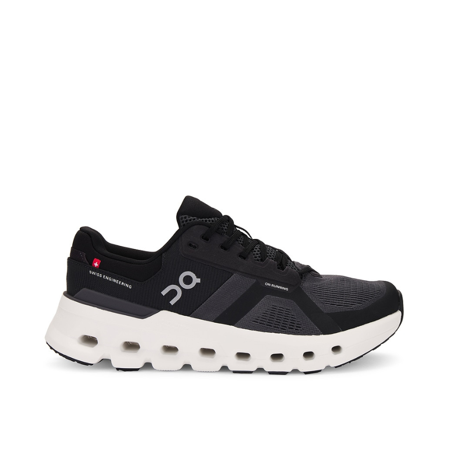 On Running Cloudrunner 2 Eclipse Womens brings more support and comfort, with its plush cushioning and stable road running design. The shoe features a 100% recycled Swiss-engineered mesh upper for breathability and sustainability, while the new Helion superfoam midsole delivers significant energy return. The CloudTec cushioning system is designed to absorb impact efficiently, ensuring a smoother run. A plush tongue enhances overall comfort and facilitates easy step-in, and the durable heel clip along with upper reinforcements add necessary support for the runner. The thermoplastic polyurethane (TPU) Heel Clip and dual-density Helion Superfoam work together to provide a stable and responsive ride, while engineered mesh ensures a comfortable fit. Additionally, rubber pads on the outsole increase durability and traction, making this shoe a reliable companion for road running.